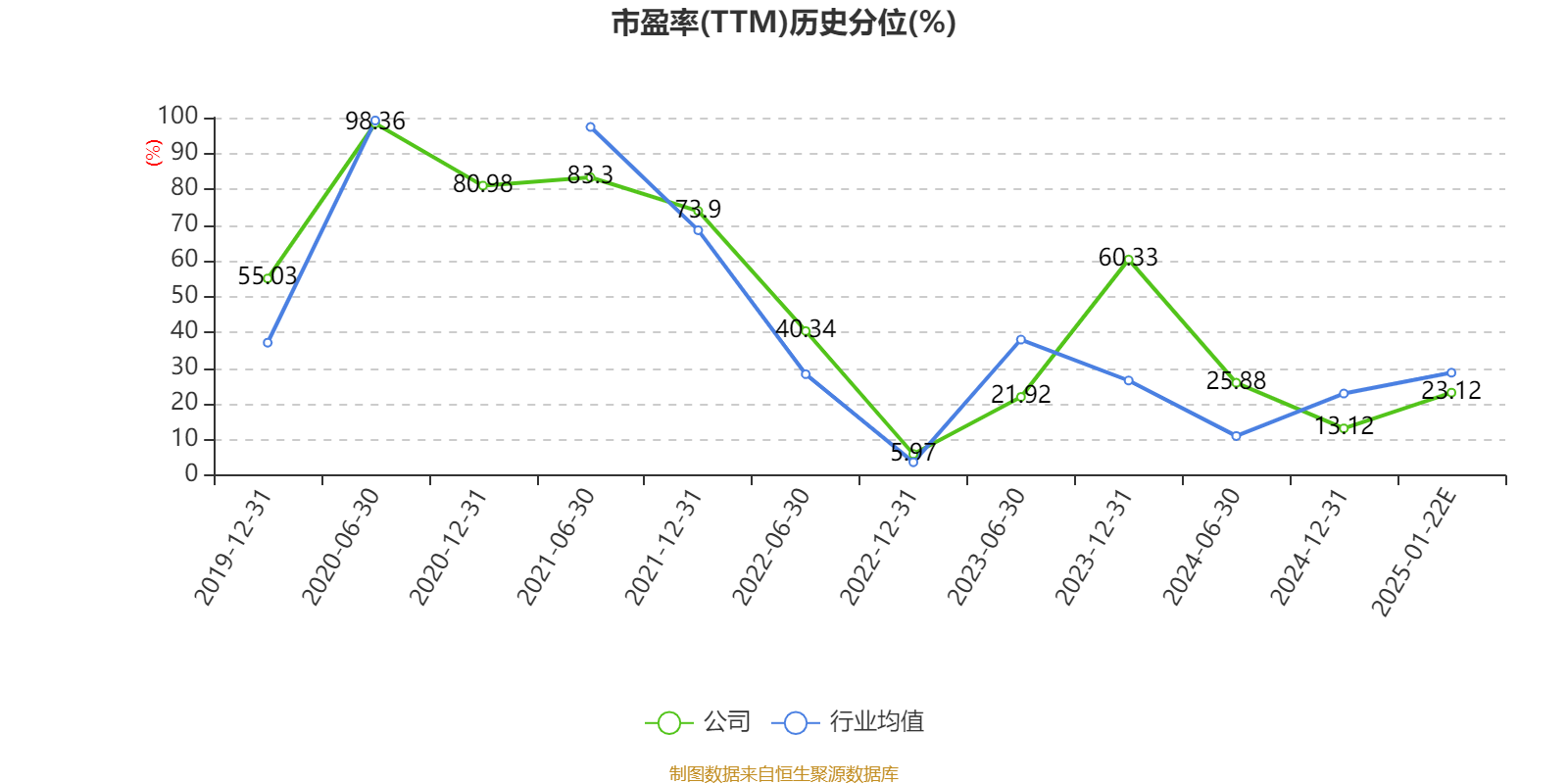以本次披露业绩预告均值计算,公司近年市盈率(TTM)图如下所示: