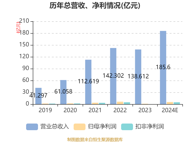 中证智能财讯移远通信(603236)1月22日晚间披露2024年度业绩预告,预计2024年实现营业收入185.6亿元,同比增长33.9%;归母净利润5.4亿元,同比增长495.33%;扣非净利润预计4.82亿元,同比增长8402.16%。以1月22日收盘价计算,移远通信目前市盈率(TTM)约为42.54倍,市净率(LF)约6.02倍,市销率(TTM)约1.24倍。